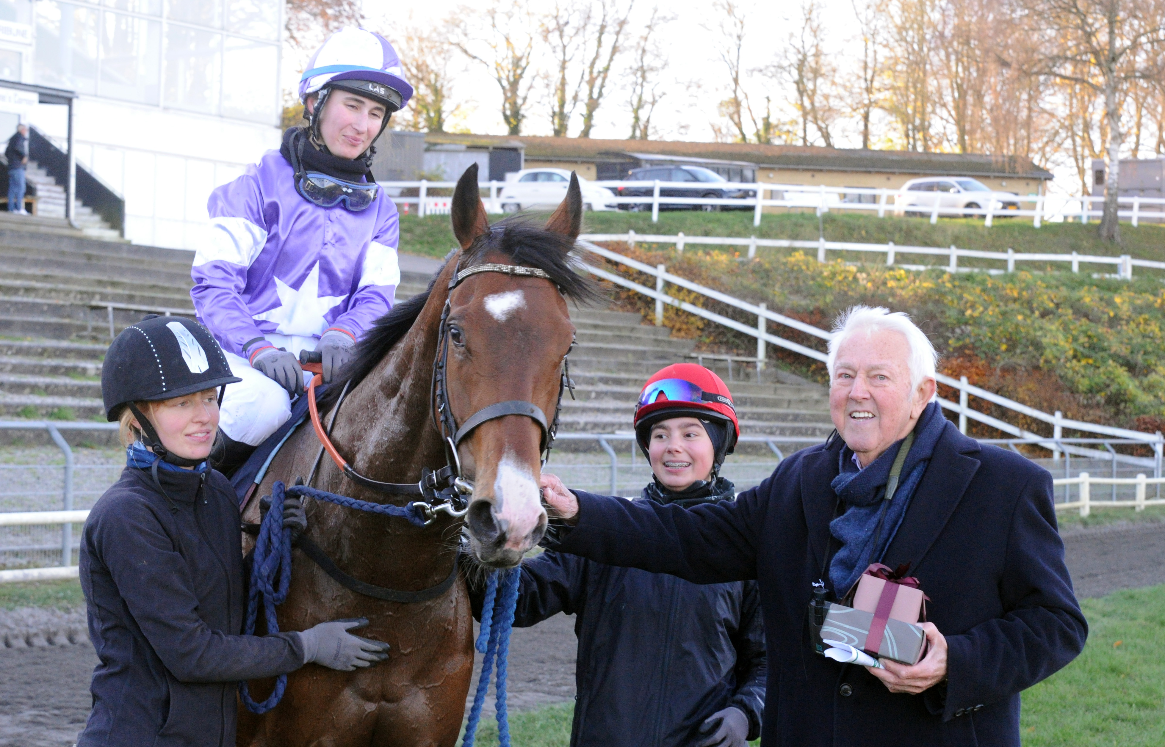 Spinoza og Melissa Vesterholm vinder Aarhus Store Handicap. Herunder et glimt fra præmieoverrækkelsen.