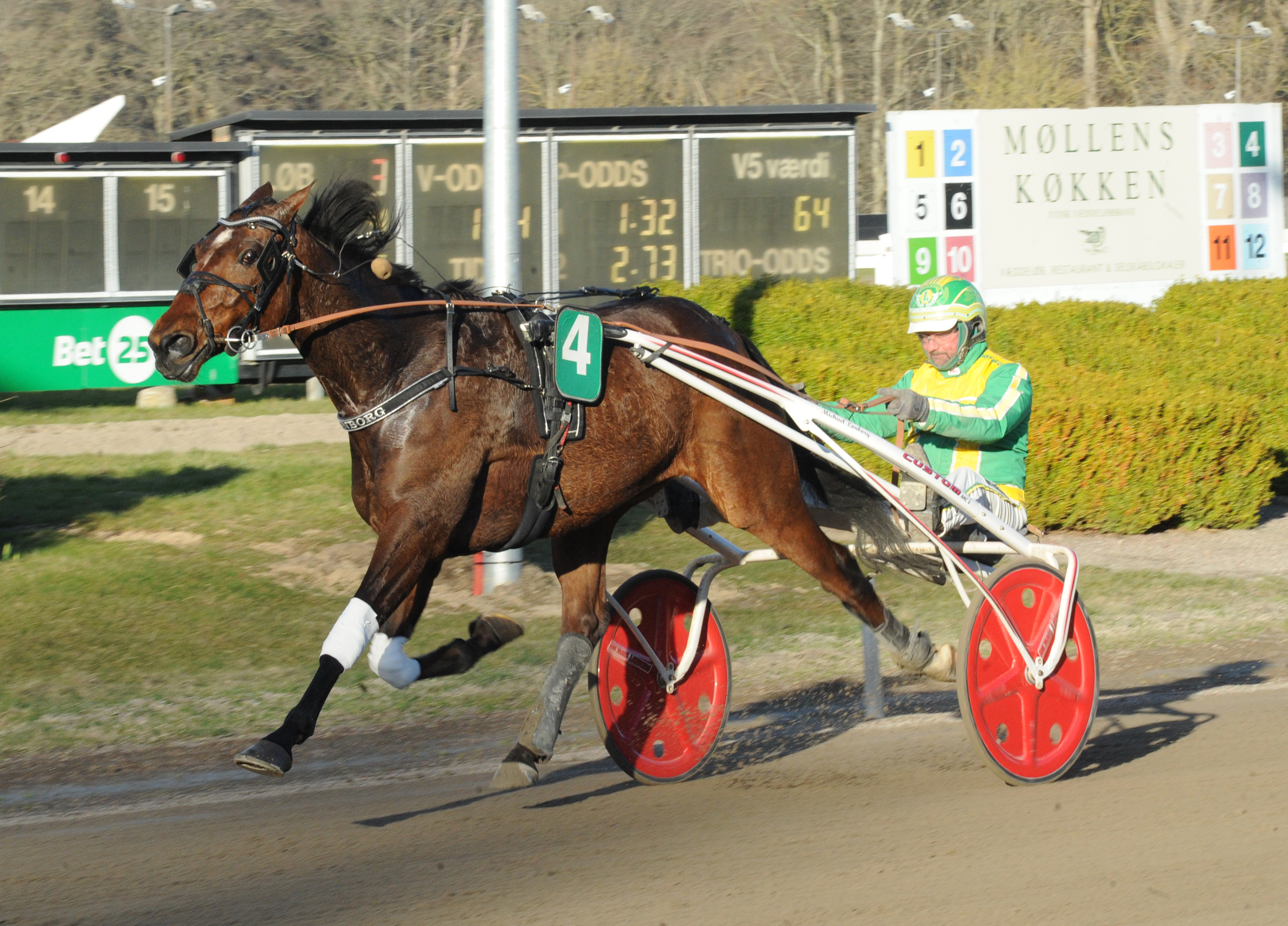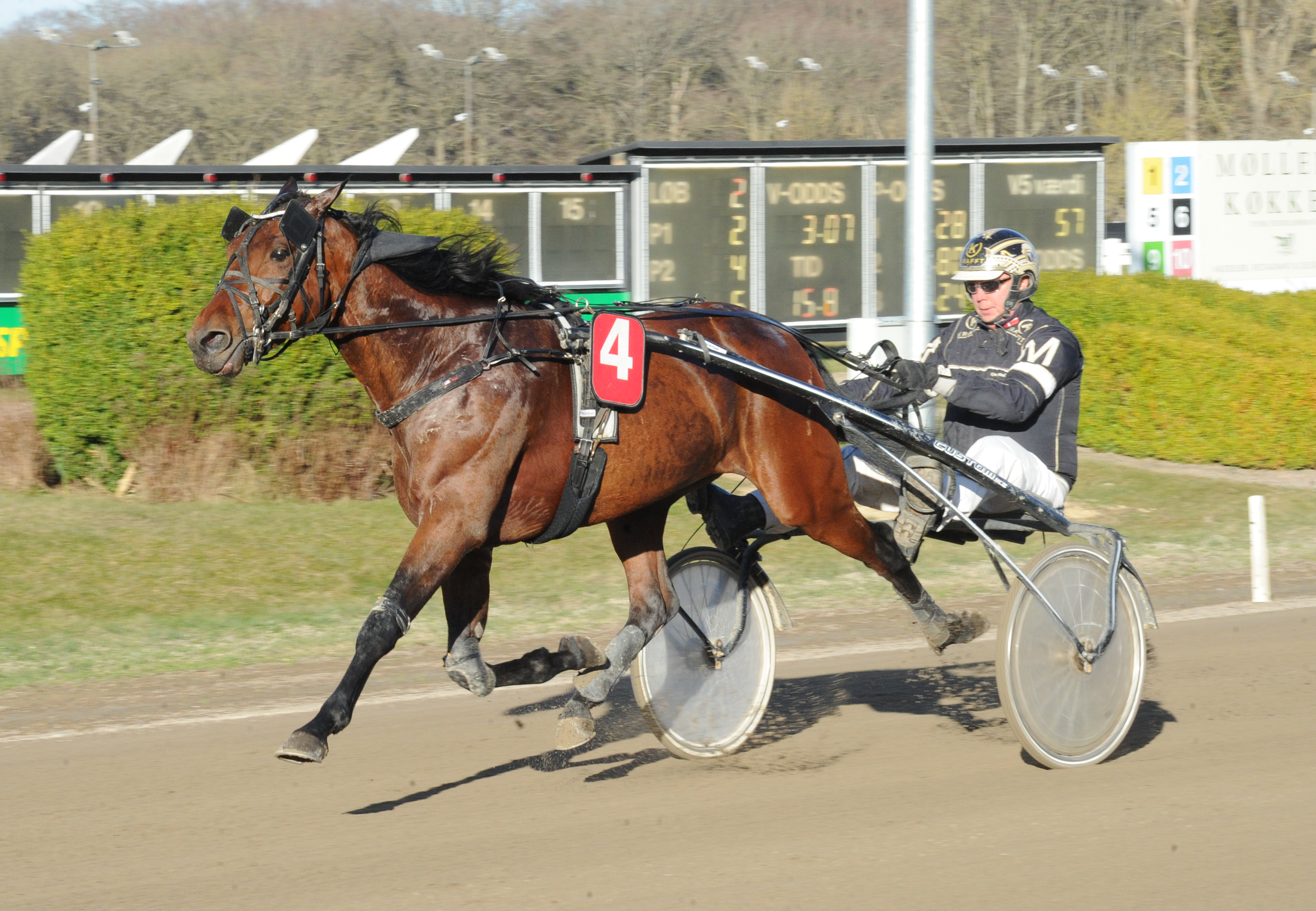 Henrik Lønborg indledte løbsdagen med sejr til sæsondebuterende Shelby. På sidste langside søgte ekvipagen frem udvendigt for den førende Maddie S, og gennem opløbssvinget sikrede Shelby sig et klart overtag.